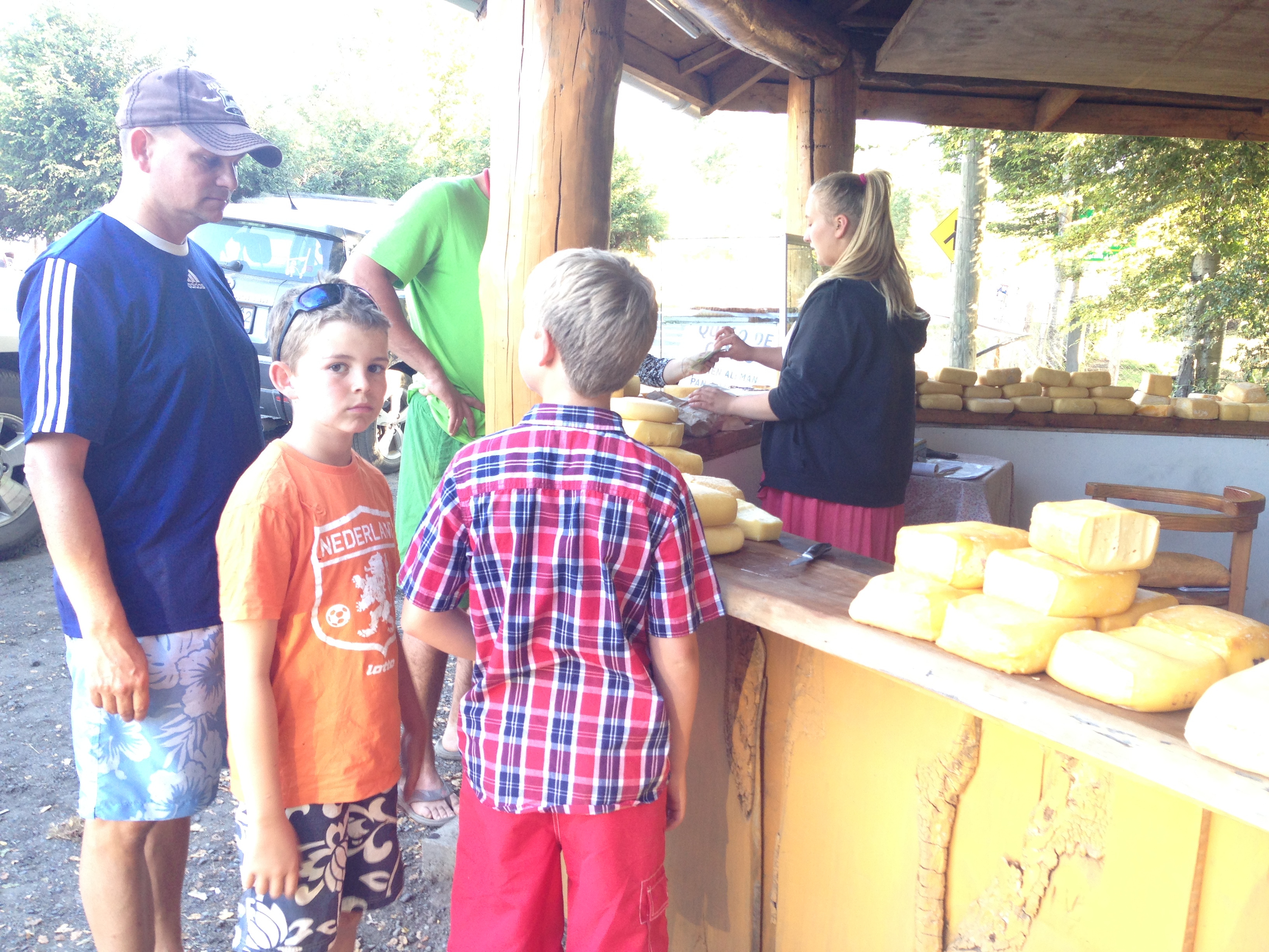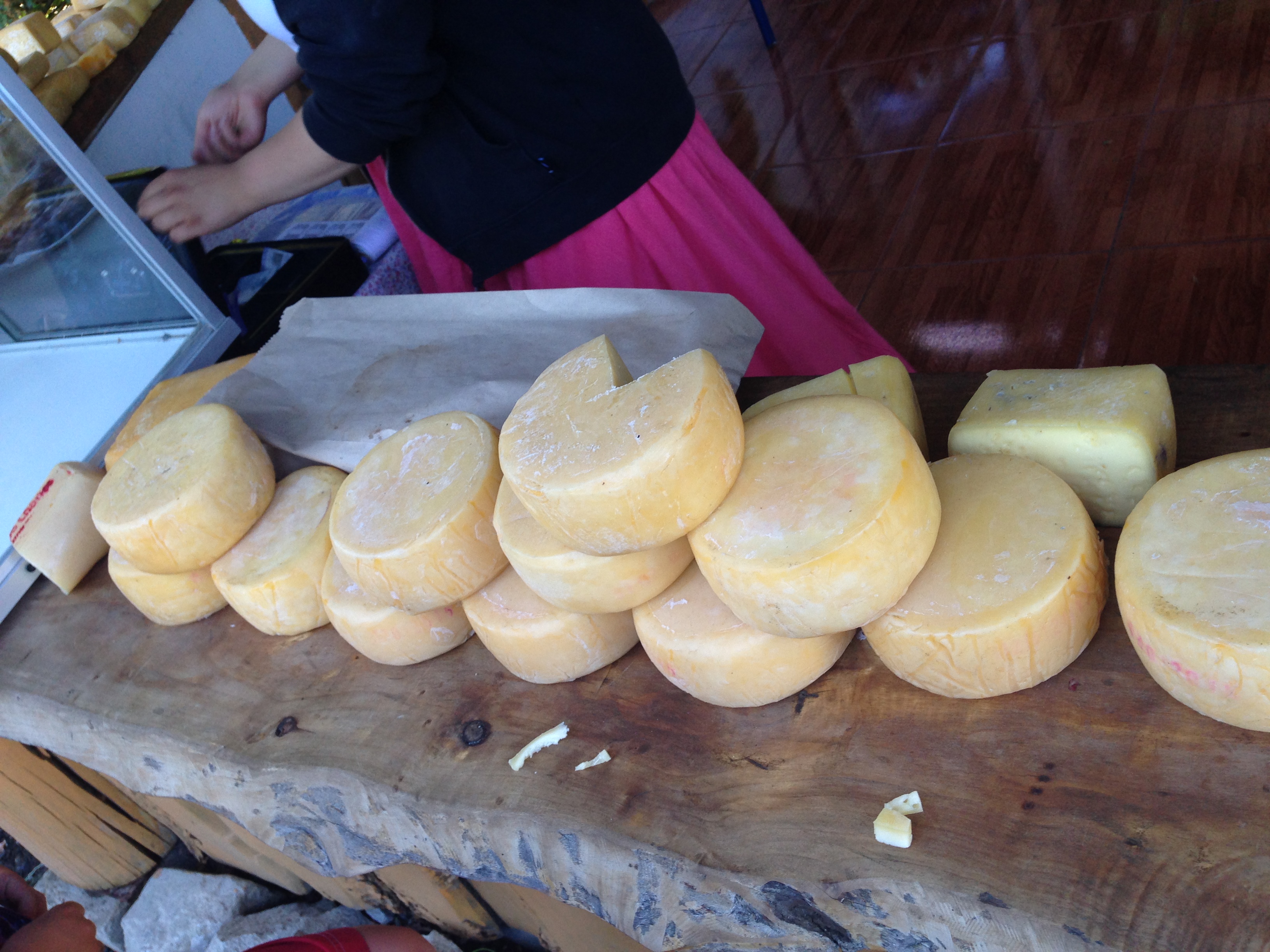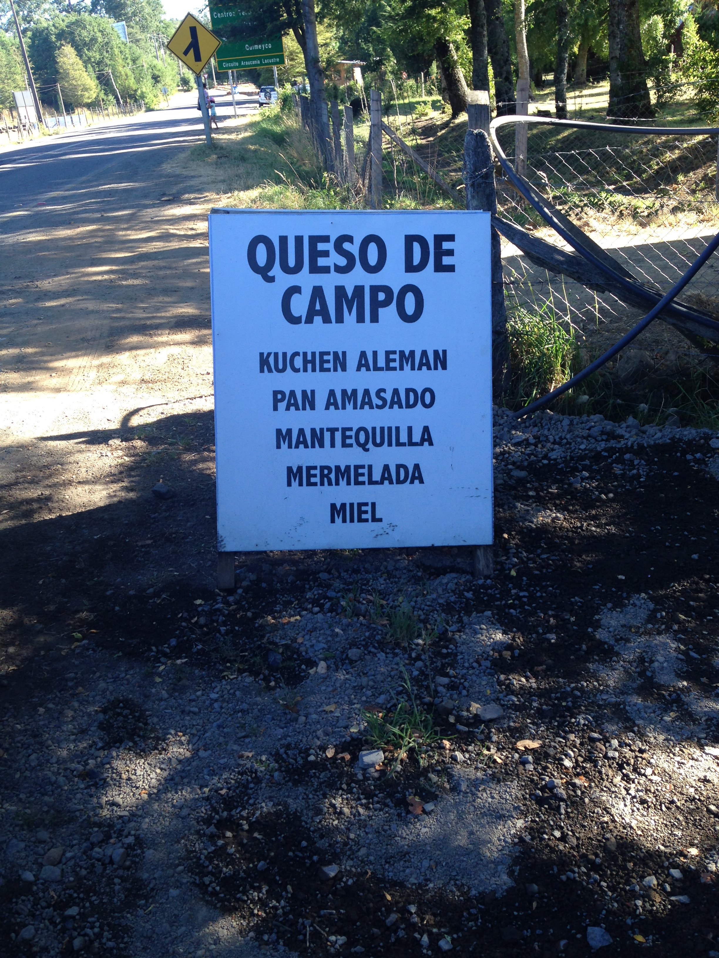I happen to love trying new things and taking the family to find new things.  We stopped the other day and found a new drink from a small cart (which was awesome), pulled into a small local empanada shop off a small farm (awesome), so today we were driving by a cheese stop and I said – when we come back I’m stopping there.  So we did – bought two rounds of fresh cheese – which is very good – we have eaten 1/2 of a round already.  Each ‘block’ of cheese costs about $7-8 – compare that to wholefoods.  The lady selling the cheese looked German – spoke fluent Spanish, but there were German flags all around.  My guess this is one of the descendants of many WWII Germans who migrated to Chile during/after WWII.  We sampled the cheese, made our acquisition and made it home.  I promptly proceeded to cut some local bread, melt the cheese and put tomatoes & avocados on top – excellent – except for burning the bottom of some of the bread… All natural & local.