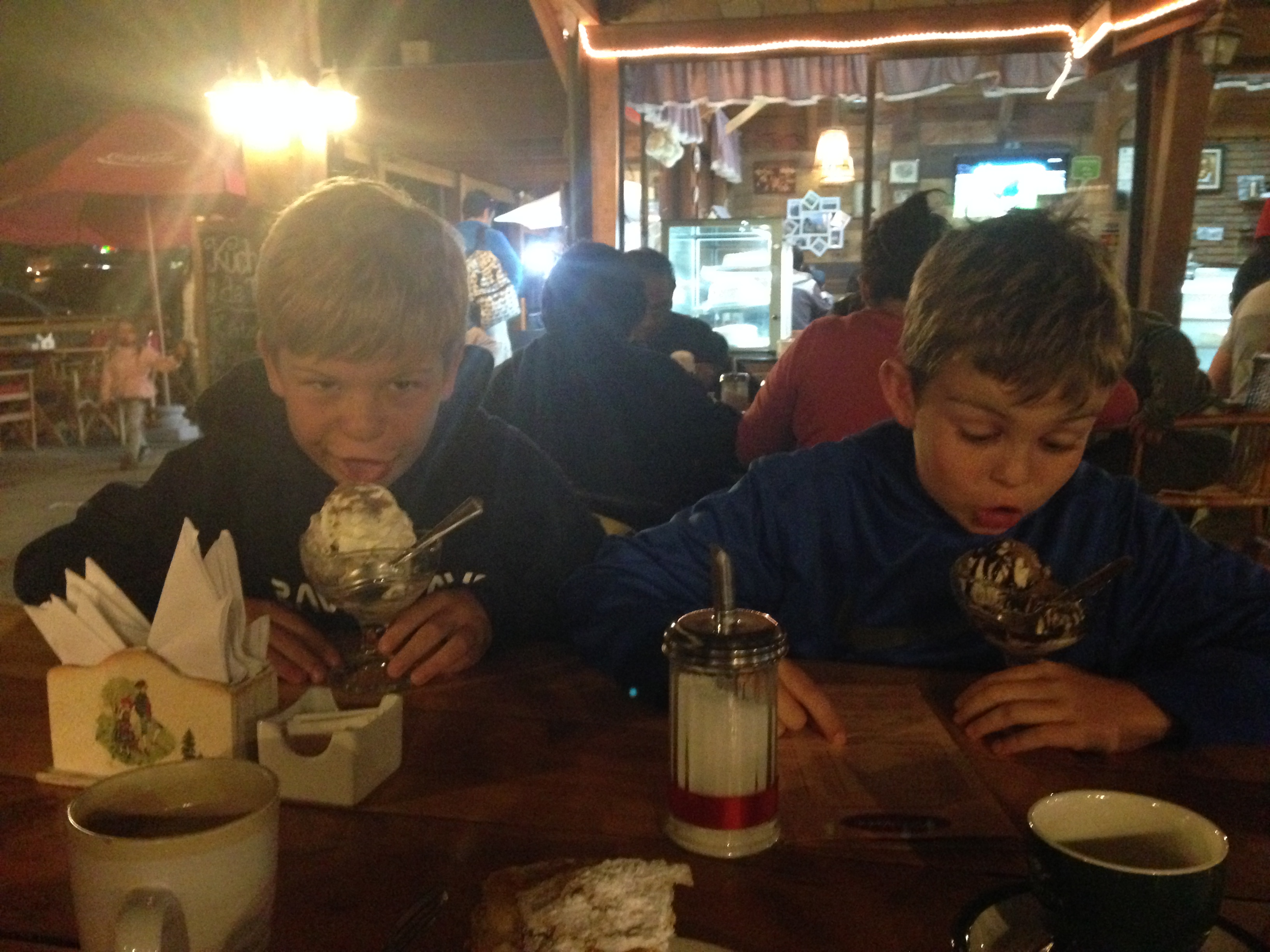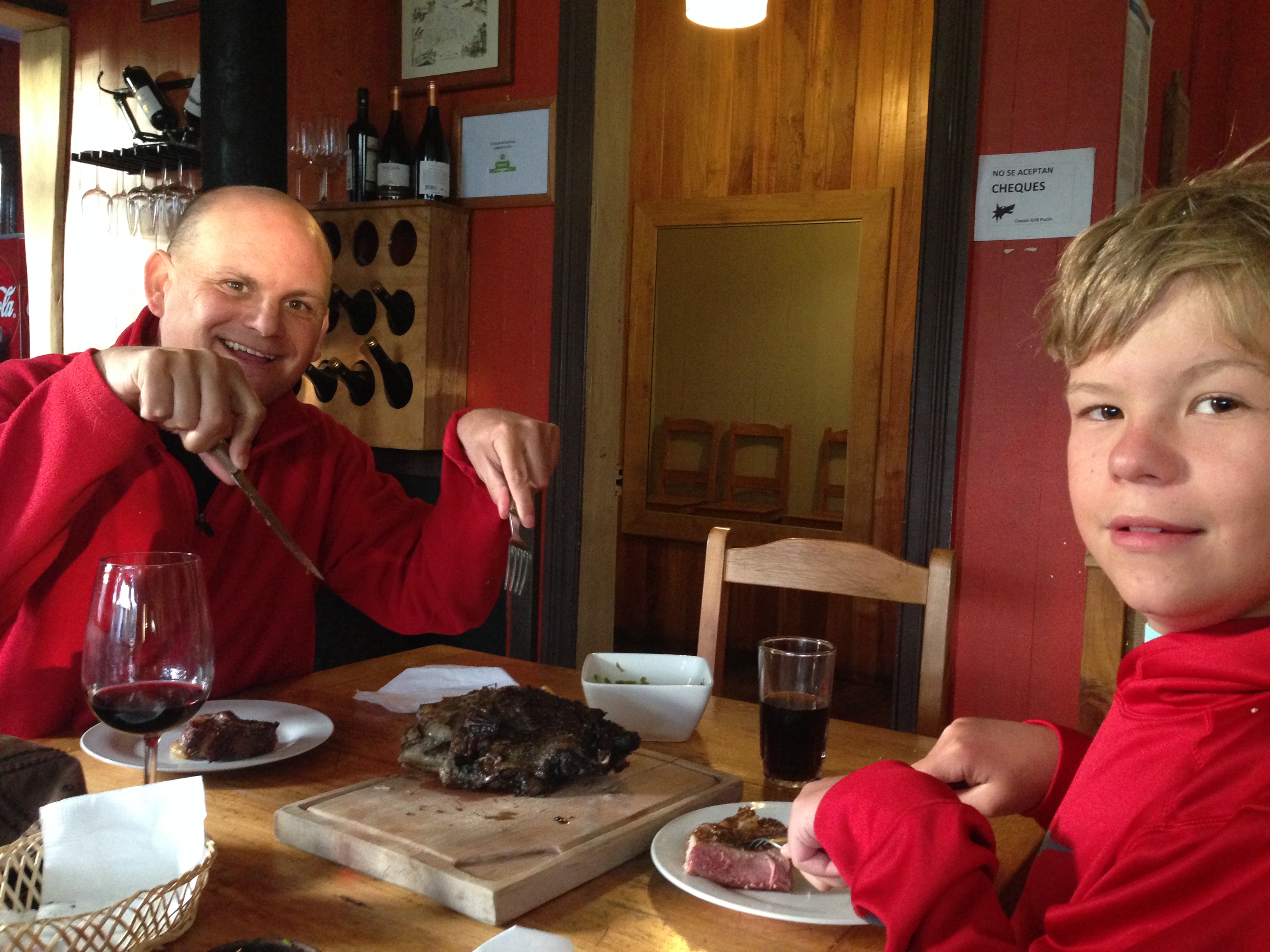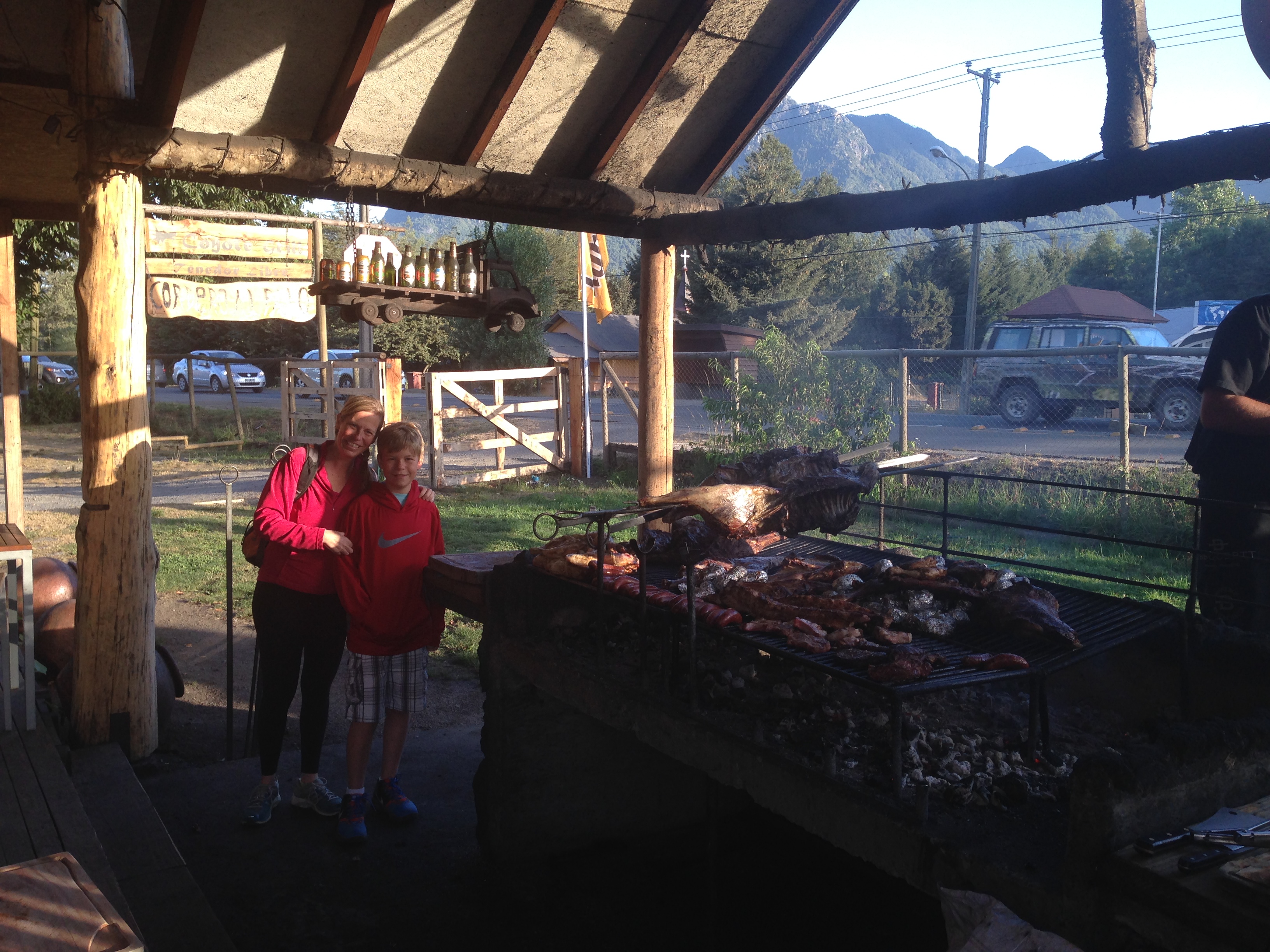 Hot Springs & BBQ – We made it to another hot spring the other day “Terma’s Huife”. It was nice, however we had a couple of other people there as well. That day it was cold at the beach, so we realized that everyone else had the same idea we did – go sit in a warm pool vs. the cold beach. We hung out for a while, then it was getting late so we proceeded back to Pucon. Over the last couple of weeks we have been passing this BBQ stand “Coyote” on our way home. Every time we pass I take a glance over and think “we should go”. So the boys were hungry and we were stuck in miserable traffic – so we decided that it was the night. It is an all you can eat type of place. Grab a board at the table, walk up to the BBQ guy and tell him what you want. We had steak, lamb, sausage, chicken, and ribs. The boys liked the steak a great deal – but some of the other things (lamb ribs) they didn’t really care for. Our “meat-a-sauras’ diet was good – but the next day I was telling Cindy that I shouldn’t do that again.