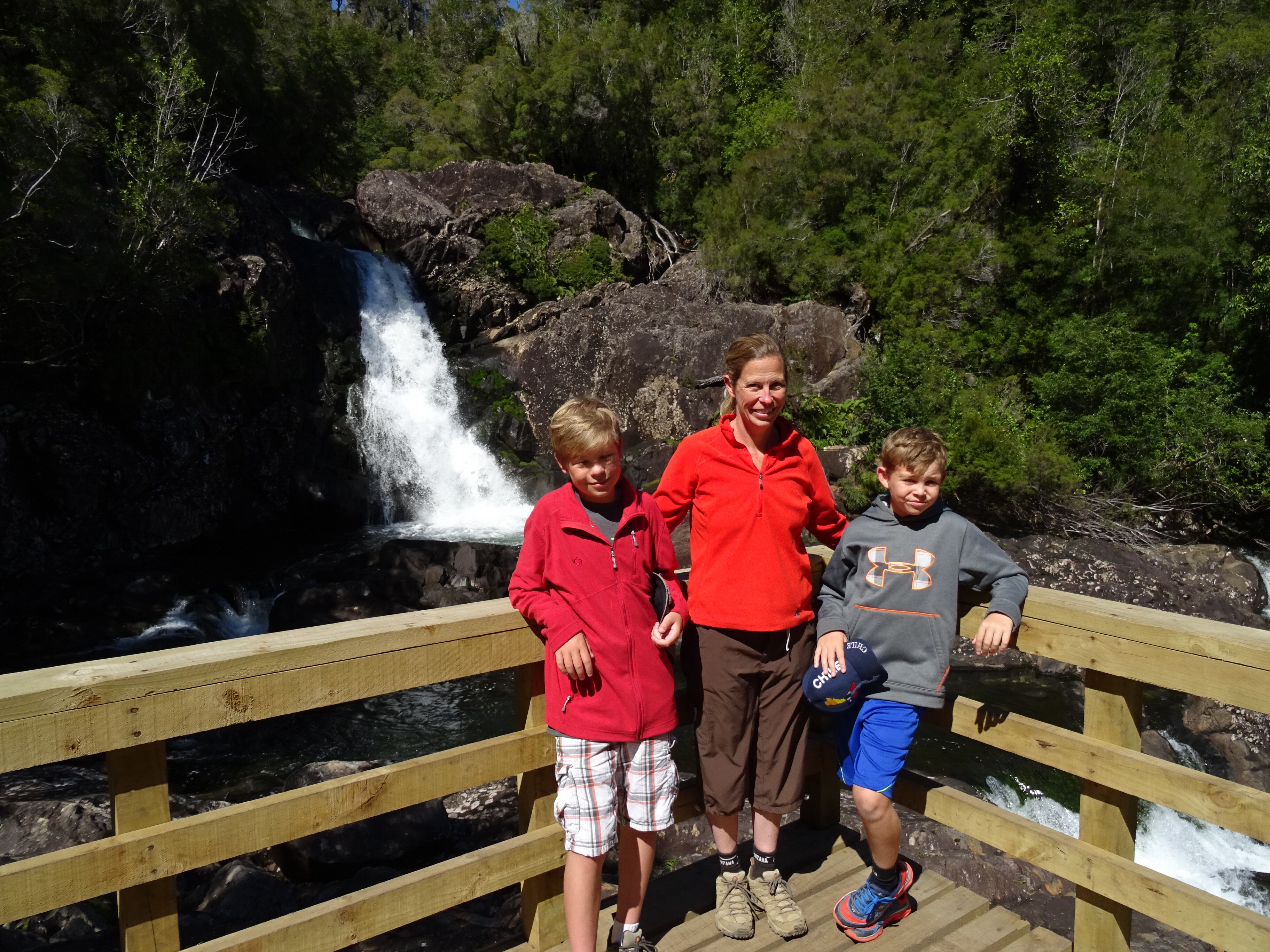 3500 Year old tree? – So we drove from Frutillar to a larger city, Puerto Montt, yesterday and went to a park that is about 30km outside of the city.  You do a hike up to a waterfall and then continue on to this tree that they say is 3500 years old.  Not sure how they know that but it’s back in this very moist area – and the top of the tree is at least 100 ft. higher than any other tree around – so I guess it’s possible.  Sort of hard to believe that this tree was here in the BC era – but it’s cool to think about – and that we humans somehow managed to not cut it down.  One of the things we do see here are signs of global warming – people talking about how it “used to snow” and “how dry” the summer is, etc. etc.  This area is a wonderful place – most of it is untouched by humans – and probably will remain that way since it’s so extreme and rugged.  One can hope that we do our best to preserve places like this for all people to see.  On all of our hikes I have encouraged the boys in the “leave no trace” mantra – and we pickup extra trash, etc. if we see it.  I will tell you though it’s very rare to find a loose piece of trash on these trails – which is great.