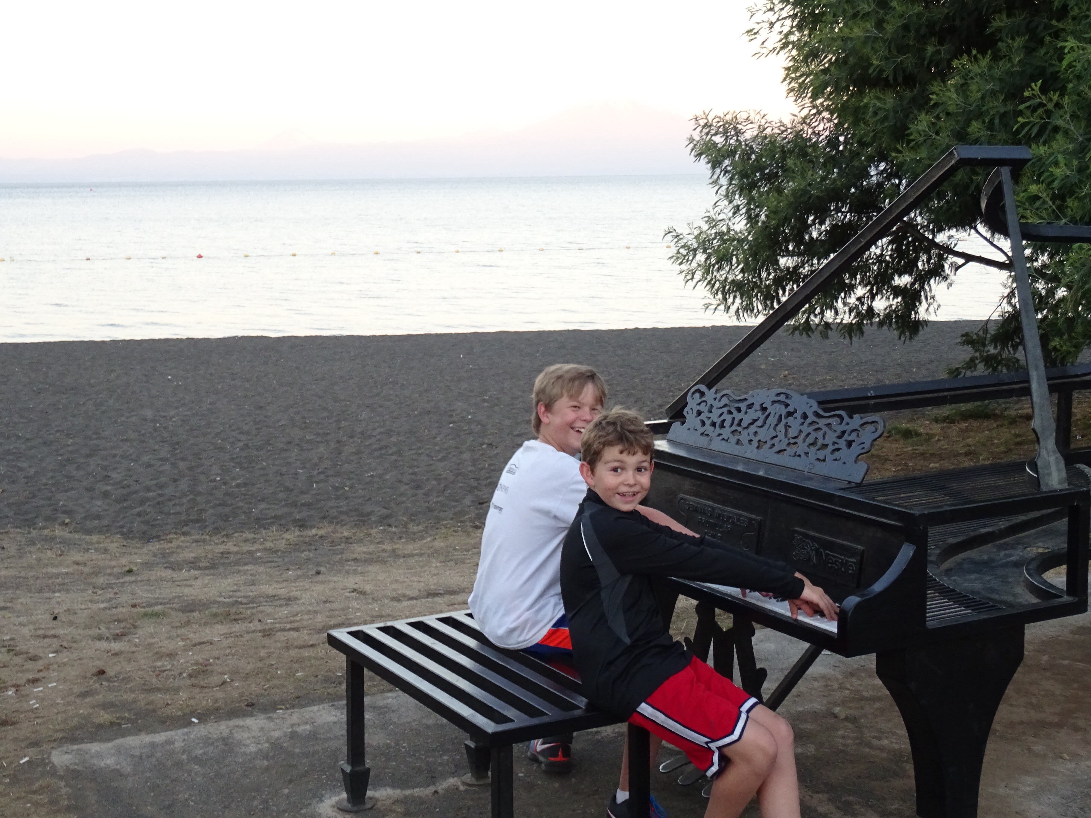 The drive from Bariloche to Frutillar is a beautiful one – going back through the mountains, old volcanoes, and generally climbing up and over the mountains.   There is a no mans land between the border check points here of about 50 km – so you’re driving and you aren’t in any country technically.  We finally got acoss, then you process back into Chile – again with passport line, then customs line, then car inspection, then you can go… each border stop takes about an hour.  It’s just the way it is here.  Cindy and the boys always seem to find nice people outside to talk with – we get to try our Spanish, and usually they can speak in English.  Cindy was very proud to have had about a 10 minute converstation with a lady and her kids outside – very proud of her speaking skills – she’s coming up to speed nicely.  Hayden’s speaking has been rock star level.  He’s having fluent converstations with people these days.  Gavin is even getting into the mix as well.   All in all we are geting more comfortable with language, customs, etc.