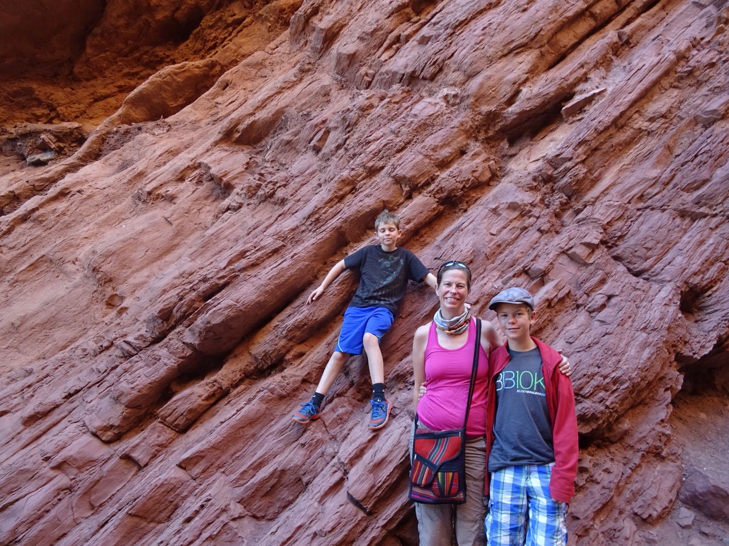 Well its been a busy week or so, mostly without internet access.  We have been around the Salta region checking out the less travelled tourist path – mostly which turned out really nice.  We stayed for a couple of days in Cafayate in a very small Hostal that Cindy found.  Basically I think we were staying in the back of these peoples house.  We always evaluate a place by the bathroom, this one combined the shower with toilet and sink – so I guess you could take a shower, bush your teeth and goto the can all at the same time.  Add little to no warm/hot water to the mix and you get the picture.  But for $50/night for all four of us it was a deal.  Cafayate is a very small place, kids playing soccer in the street, people riding bikes and horses into town.  It’s also the start of Argentine wineries so there were lots of bodega’s along the road and various wine shops available.  They even had wine flavored ice creams.