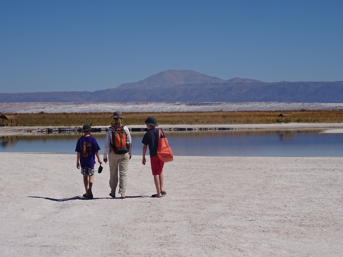 So we’ve spent about four days in San Pedro de Atacama at 8,000 feet doing some pretty amazing things in the great outdoor desert.  The Atacama desert is one of the driest places on earth and has 10% humidity, making it great of star gazing, as well as having nearly nothing grow.  I was sort of shocked a bit when we arrived into the town as it was bustling with tourists, tour operators, travel vans, etc.  We have been off the tourist path for awhile, staying in very small towns with hardly any of the tourism features that you find here.  It was a good place to experience some new things and we had a pretty good time.  On the down side, our hotel (if you can call it that) basically had open windows in our room – no big deal expect that it gets really cold at night and our room would be an ice box in the morning when we woke up.  I guess you take the bad with the good.