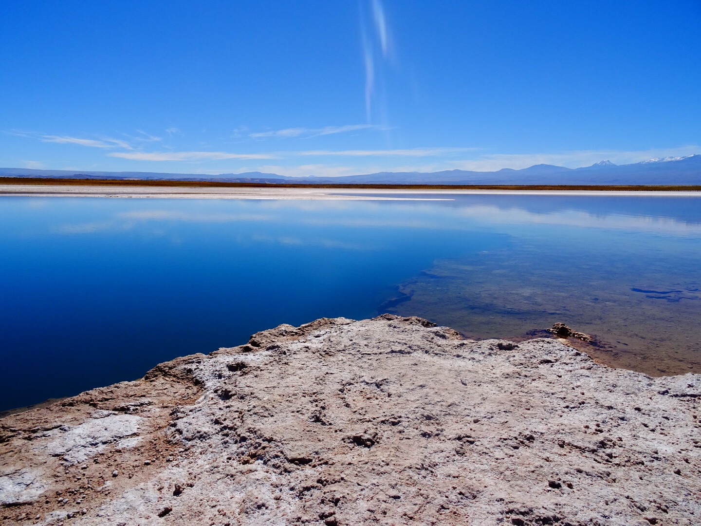 So we decided to go to Laguna Cejar during the day to check out a lake in the middle of a salt flat and swim.  What’s amazing is that there was no one else there while we were which was great.  The tourist tours start at 3 PM, and we got there at Noon. When we were done the tourist vans starting showing up, so we were glad to have been done with our experience before the crowds arrived.
