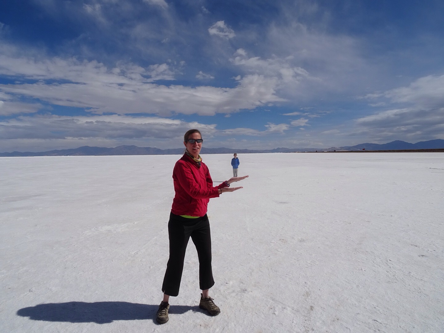 We did stop at a great salt flat and took some pictures – this salt layer is huge and mined actively. We walked out a bit, but the light was very intense from the sun off the salt – more than hen you are skiing.