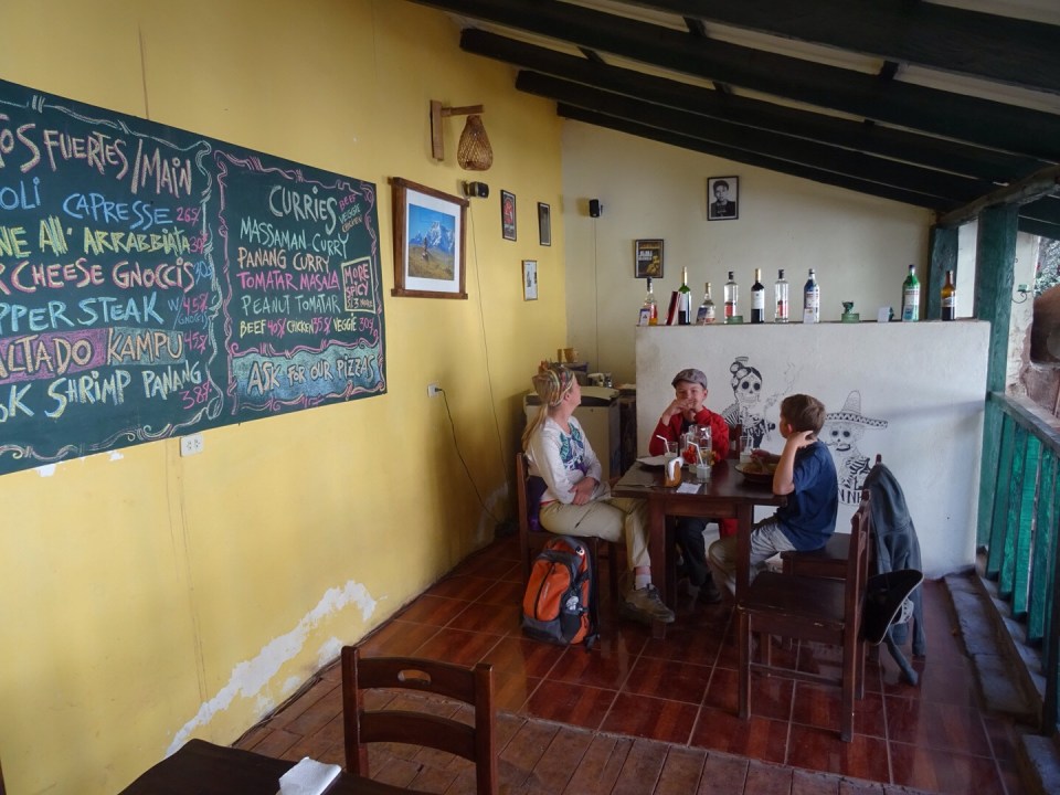 Ok, we’ve been doing a lot of stuff and splitting blogs into two helps keep the ipad operational. We like to upload a lot of photos and sometimes too many photos equates to ipad crashing… Yeterday we went to Moray and the Salineras Salt Mines (started by Inca). These are all local activities in/around Urabamba so it was a good local day. We ended the day eating dinner in a great place (Kampu) that serves pizzas at night, but also he makes great local curries. We all had a great meal – which we ranked in one of our top 10 meals on our entire trip so far.
