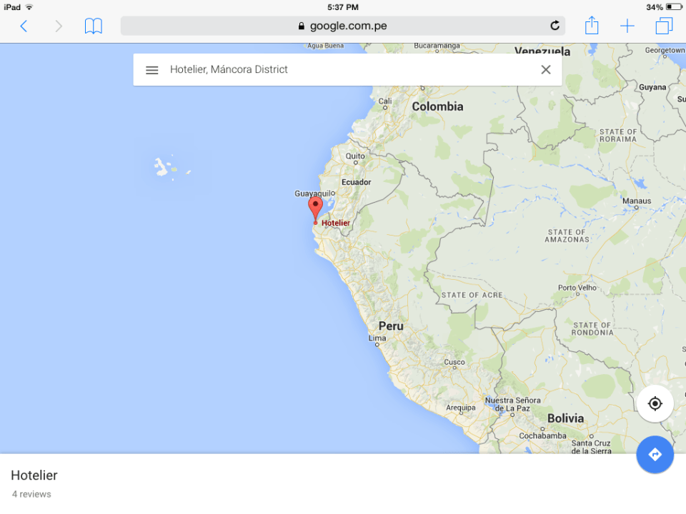I had a great fathers day today here in Mancora – walked the beach, played soccer with the boys & Cindy, had lunch in town, bought some shirts, and now drinking a very fine Mojito with my lovely wife.  Yesterday we both got massages on the beach by a local guy – who likes to do deep, deep tissue massage.  I think I was sore afterwards.  Today he brought us a Gideon Bible, which was an intersting twist on life in Mancora.  I don’t think this is a place most US tourists visit as it’s not on the main tourist route in Peru, however it’s one of the most relaxing places we have been in Peru.