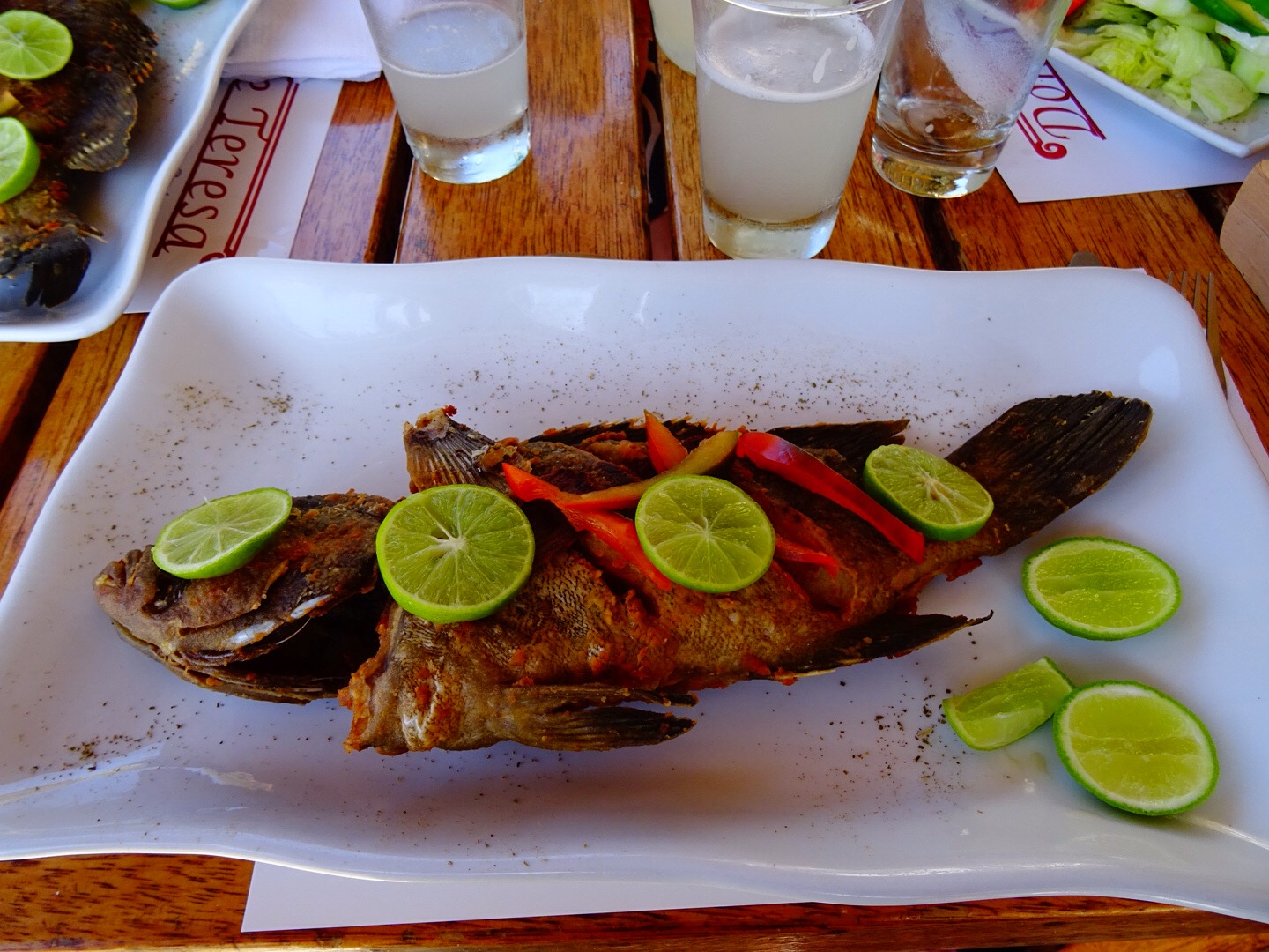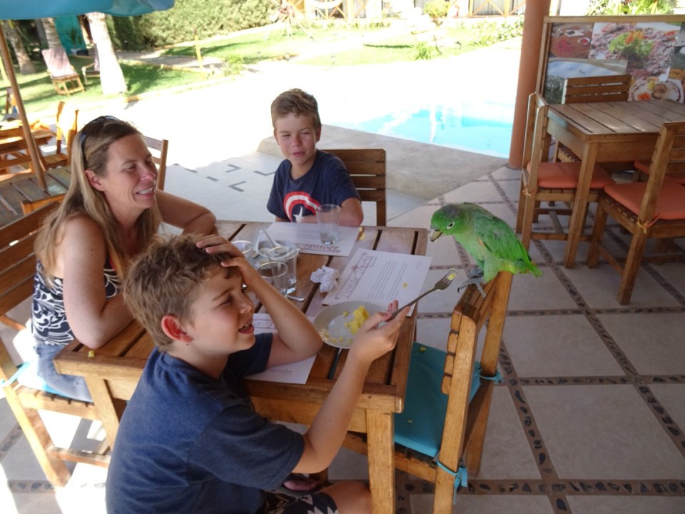 We have had great meals at our little hotel – Hotelier Arte y Cocina  –  the chef is a great guy who’s mom was a famous TV chef in Peru.  His meals are amazing.  Fresh fish almost every night – including sashimi (yellow tail), caught daily.  He also has a pet parrot who had lunch with us – great fun for the boys to have lunch wih a parrot.  He really liked the mashed potatoes fed from a fork.