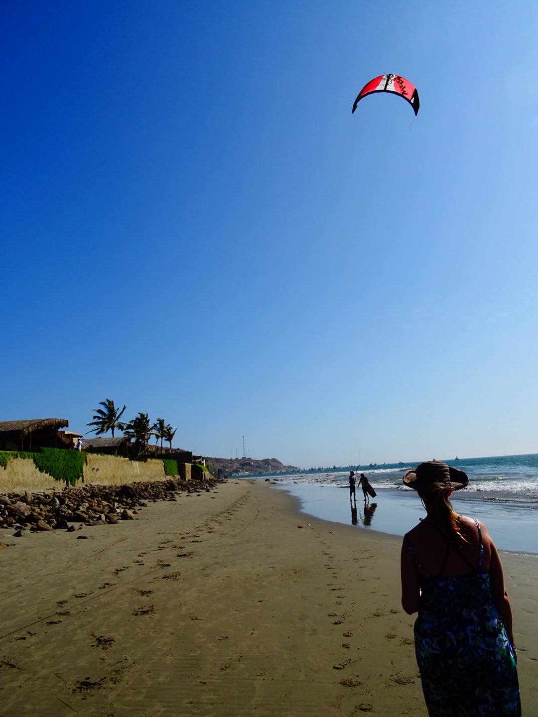 So we left Chiclayo and drove about six hours to Mancora.  Mancora is on the beach and just like the carribean – except better seafood.  We have been here for three days and have already succumbed to the beach lifestyle.  The boys went kayaking first thing, had a minor wind/sea too strong for us issue, but it all worked out.  Today Hayden and I went kayaking, only to find that his kayak had a hole in it and was starting to sink abour 400 yards from shore.  In the end it almost sank, Hayden hung on the back of my kayak and then onto the front of his and I paddled us all back to the beach.  Note:  check boat for holes before embarking on voyage…