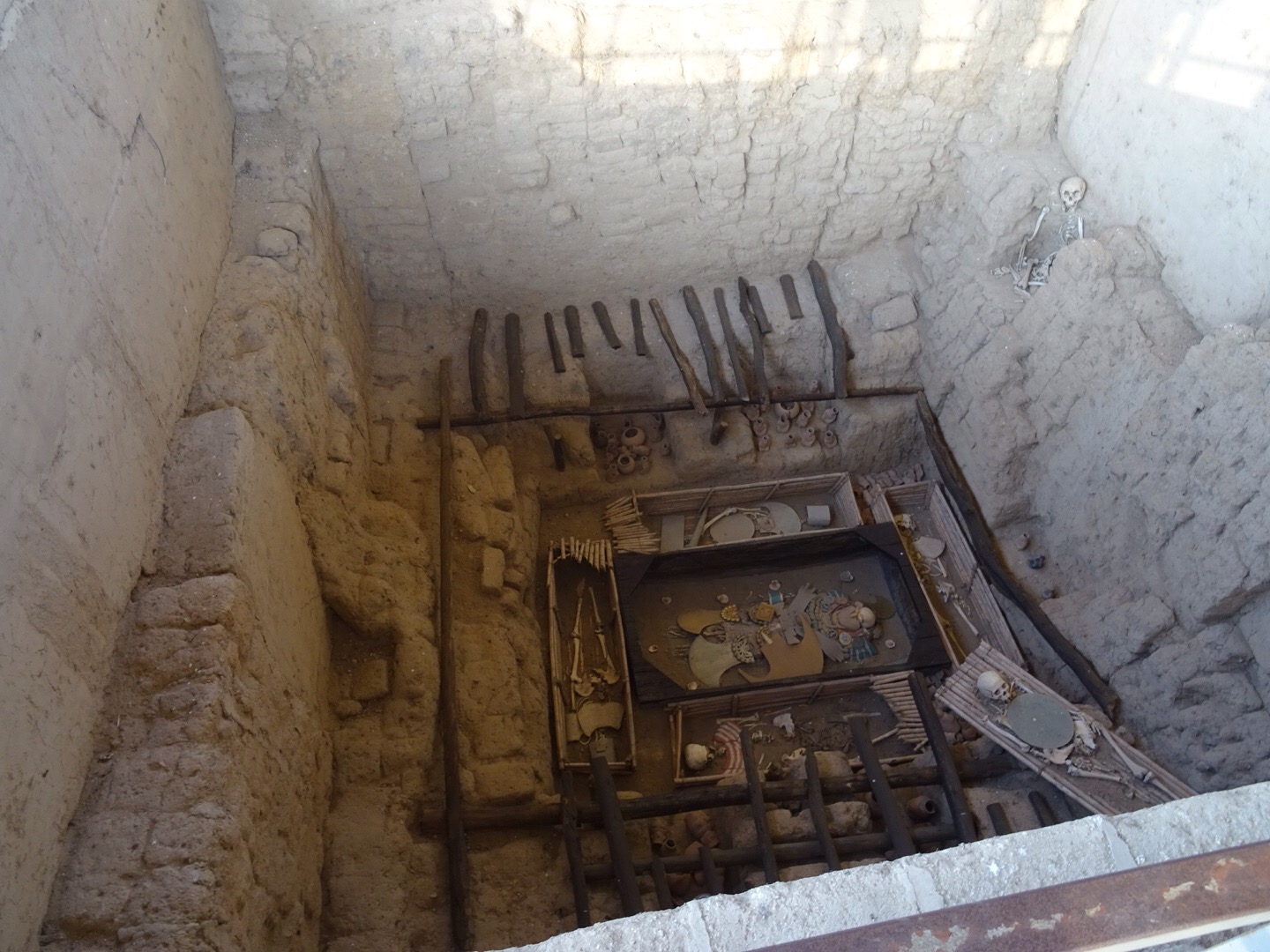 Our last ruin tour was in Sapin to visit a very old pyramid, that until 1987 had sat by the road undisturbed and looked like a mountain sitting there.  In 1987 some grave robbers went there and found some interesting pieces – caught in the act by some local police – who then called a local archeologist – who dug around some more and really hit the jackpot.  All in all they found 15 tombs, the last tomb was found in  (2004 – we think) – so this is a very recent find.  We went to the museum, which was one of the best in Peru, and got an hour long tour of the history – very intersting and good to learn about cultures from the past.  We spent 8 hours on our tour, which was a lot, but being last ruin tour we went out with a long one.