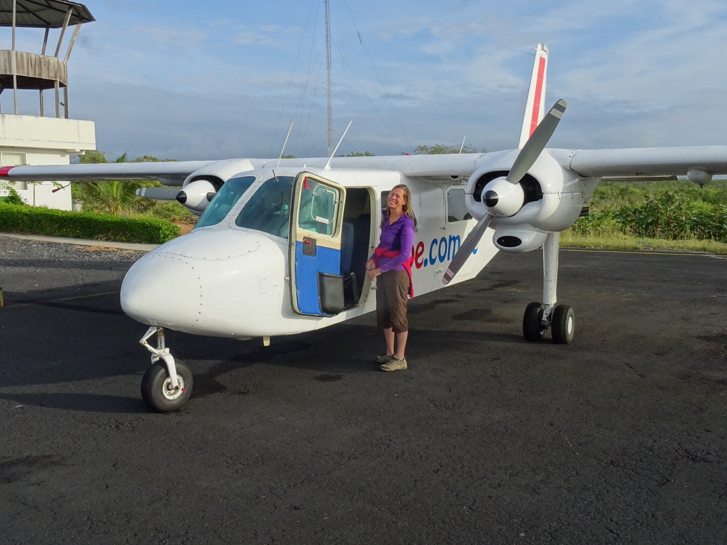 Cindy “loves” small airplane rides. I think she was looking for other options, but this vs. 3 hour bumpy boat ride, she went for it.