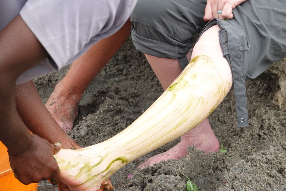 On our way, we found sugar cane (H using his best scouting technique to remove the outside), a quick plant massage by the lake, and some fishing boats on our journey back.