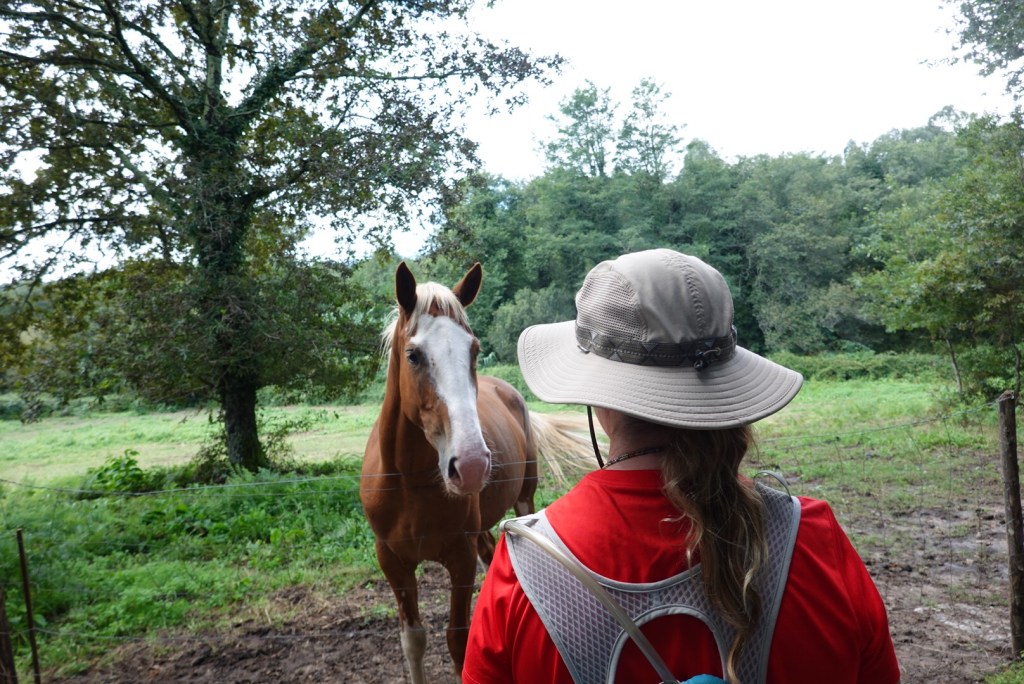 We saw more today of green fields, lots of grapes being grown, some cows and a very pushy horse – who seems well trained at getting treats from people on the Camino. Not really much else to say – thank god for mole skin as I have a couple of blisters but they are fine.