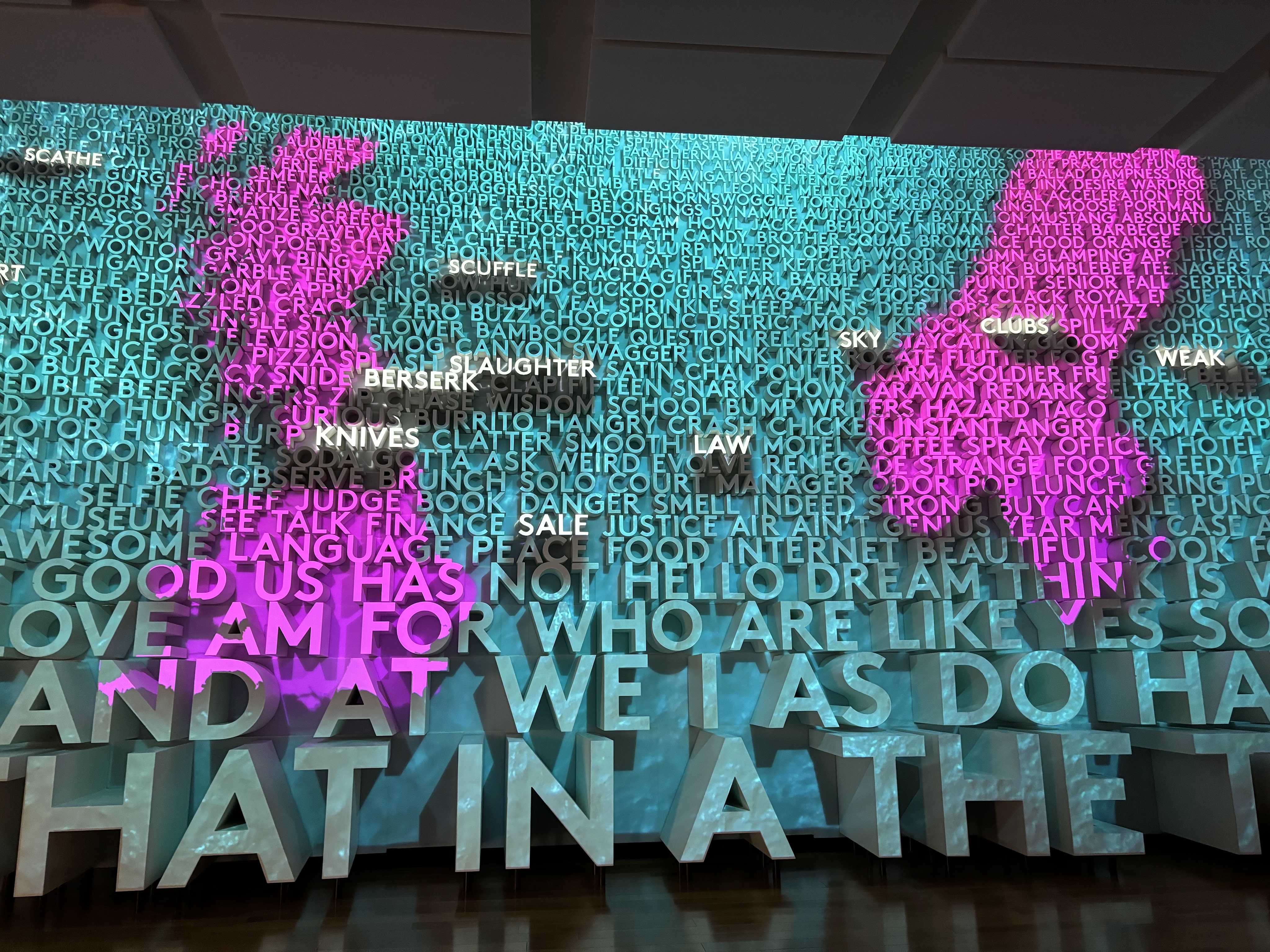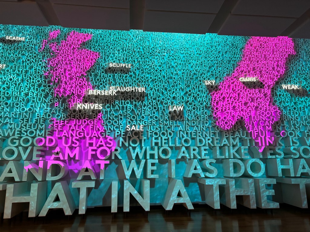 Since we were coming to DC, we always tend to find something unique to do, and this time was no different. Our journey took us to a great exhibit “Planet Word” that talks / illustrates how language works and the origins of English. It’s pretty powerful, and the visuals are amazing.