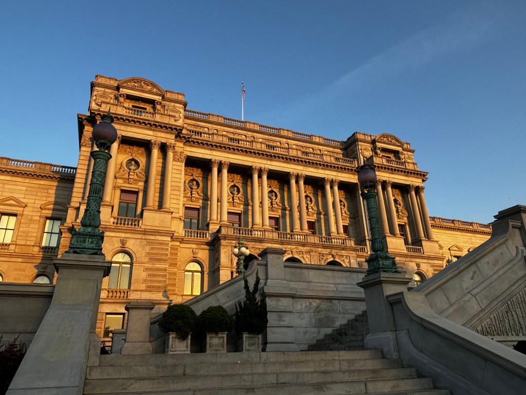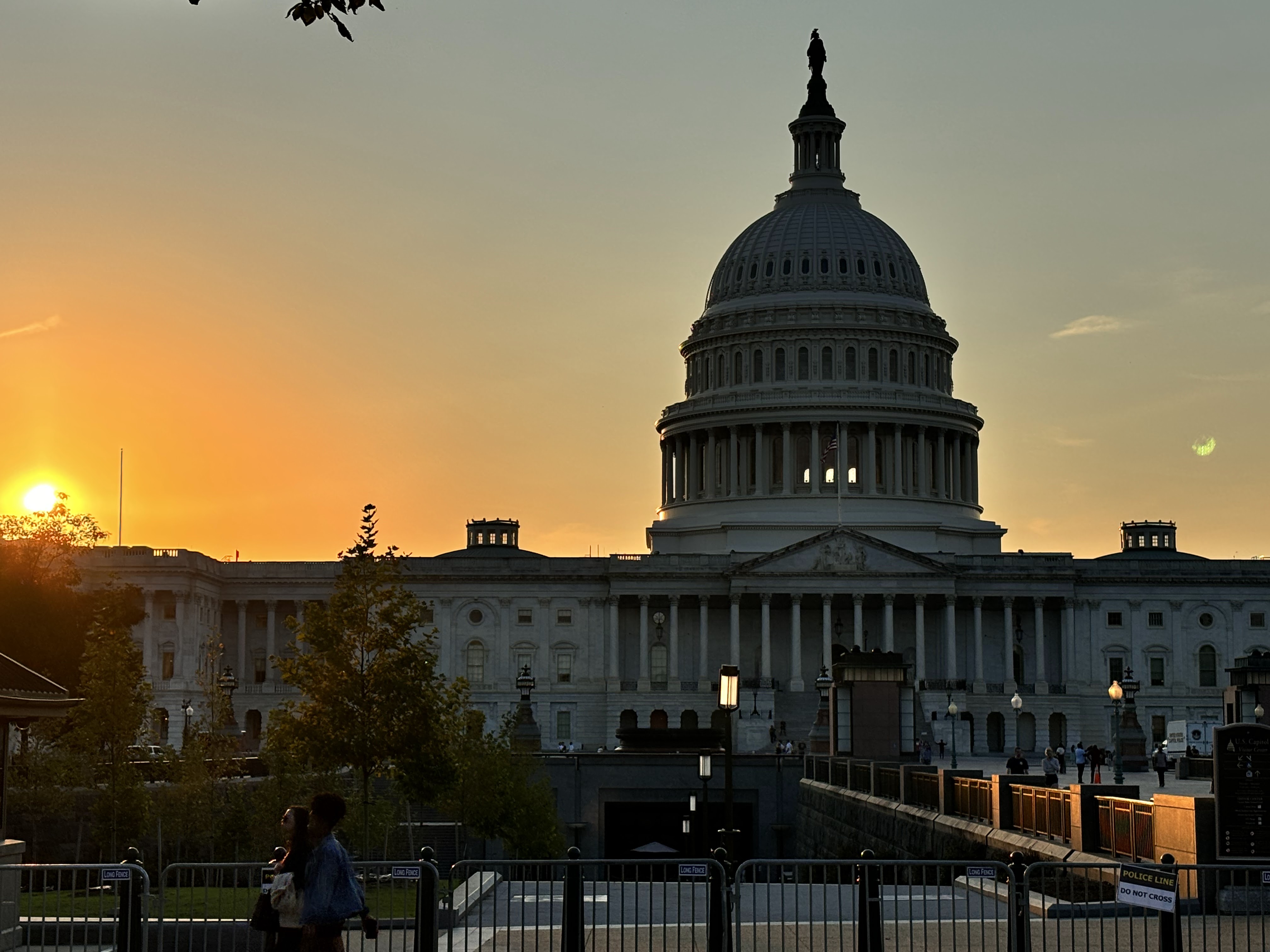 Last night we ended up having dinner at Cafe Berlin with “Cousin Jeff” – who has lived here for some time now and works for the government. Some great German food and beer was had – although I’m not sure I could drink a formal German glass of beer, just too much. Before having dinner we walked by where Gavin worked in the spring as an intern for Michael Bennett (CO Senator), but also by the Supreme Court, and the Capitol itself. The sun was setting and it was a great sunset on the buildings – that time of day when the colors are really amazing. It’s been about 75F, so the days are outstanding. Today is 80F, so shorts are in order.