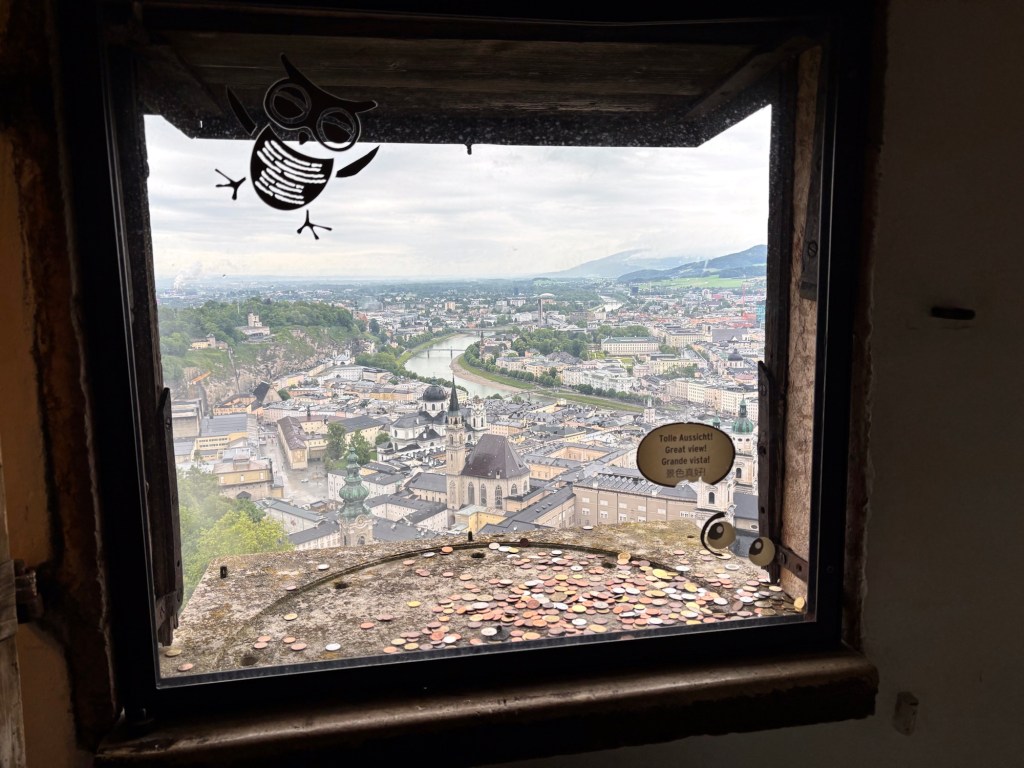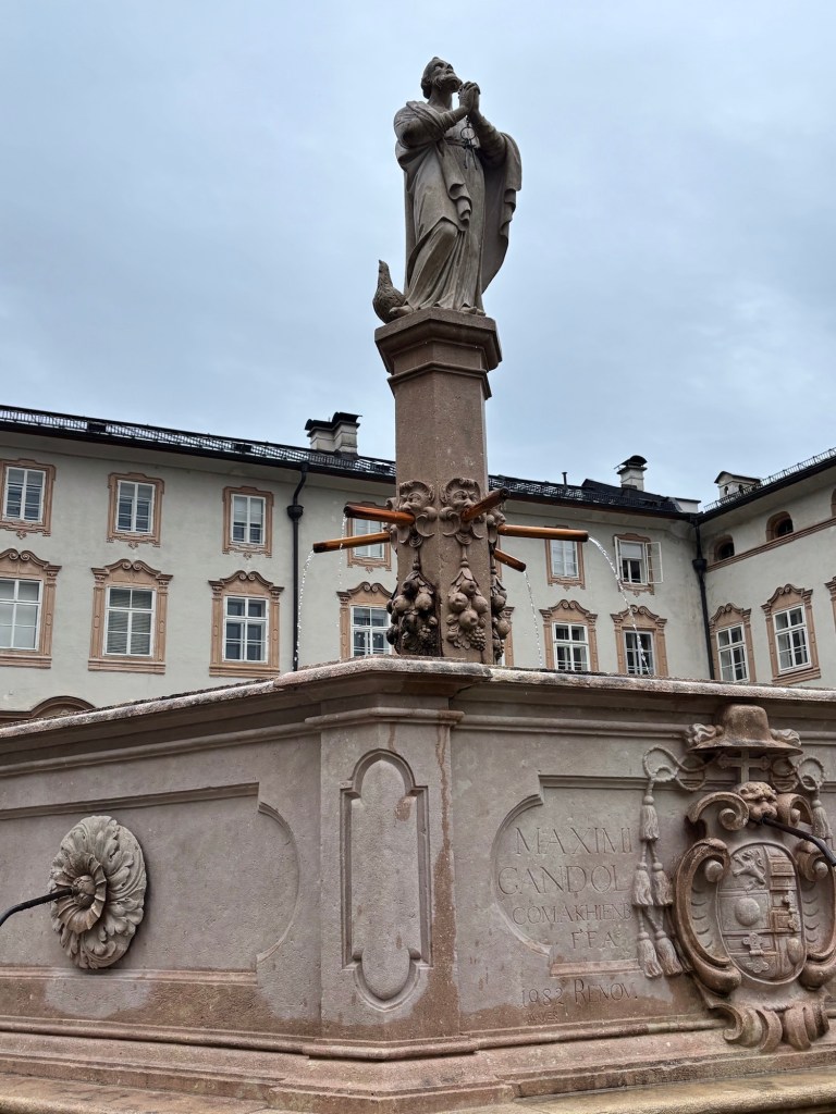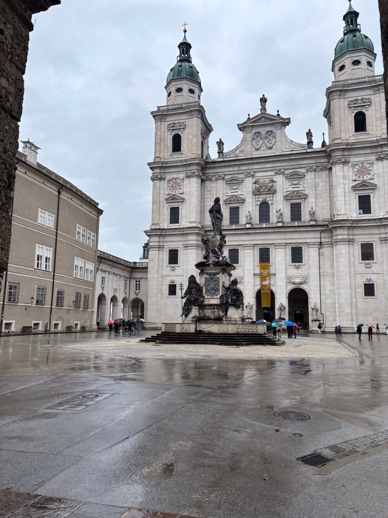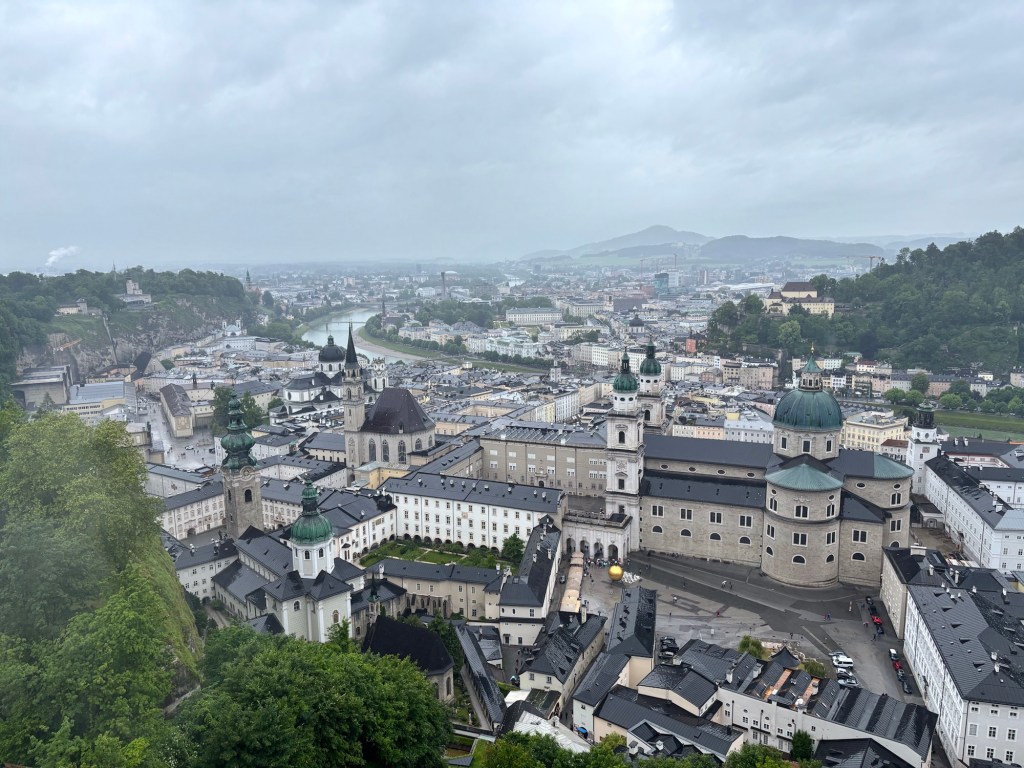 Now I would say I benefit from growing up in the Pacific Northwest- largely rain doesn’t really bother me and raining here all day it was…. So we put our raincoats and gathered our umbrella’s and did a discover Salzburg afternoon at the castle. This castle started in about 300 AD and over the years the various leaders (church mostly) have added to the scope and size of the castle/fort. Inside was a museum (so out of the rain) and that was an interesting tour. They seem to focus a lot on WWI and not necessarily WWII. Salzburg and this area of Austria was essentially the edge of the front during WWI, so basically celebrated. WWII the Nazi’s sort of strolled right in with everyone greeting them with open arms – so maybe not the best storytelling.