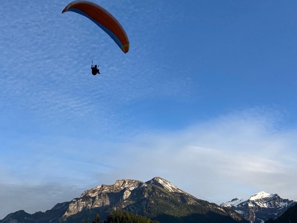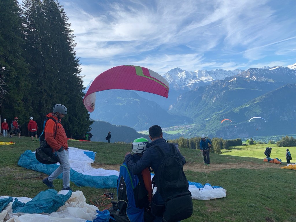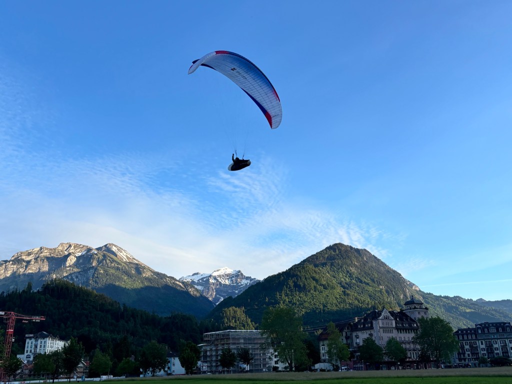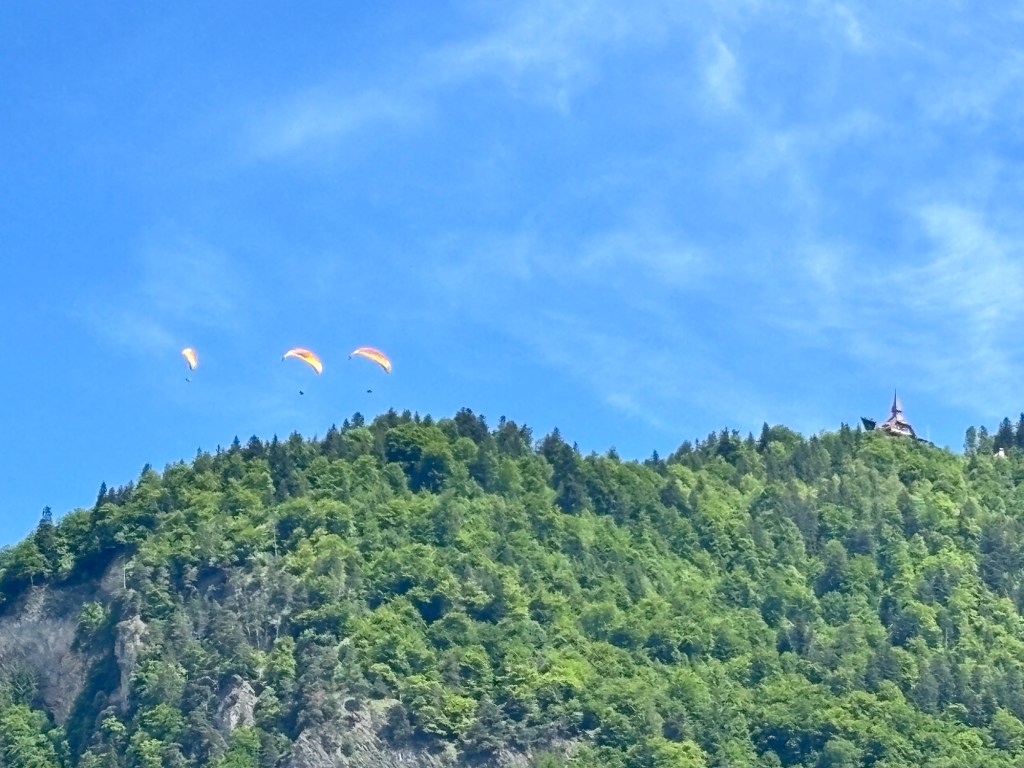 Well Saturday was our last day in Interlaken and we made the most of it starting with Gavin and I doing a paragliding ride from the top of the hill (3,000 ft higher) down to town. We then proceeded to find a great hike along a lake and finished above the town at a dinner that ended in a rain storm. Now sitting at the hotel in Munich, Gavin is back in Berlin to start his internship and we’re flying back to Denver / Raleigh.