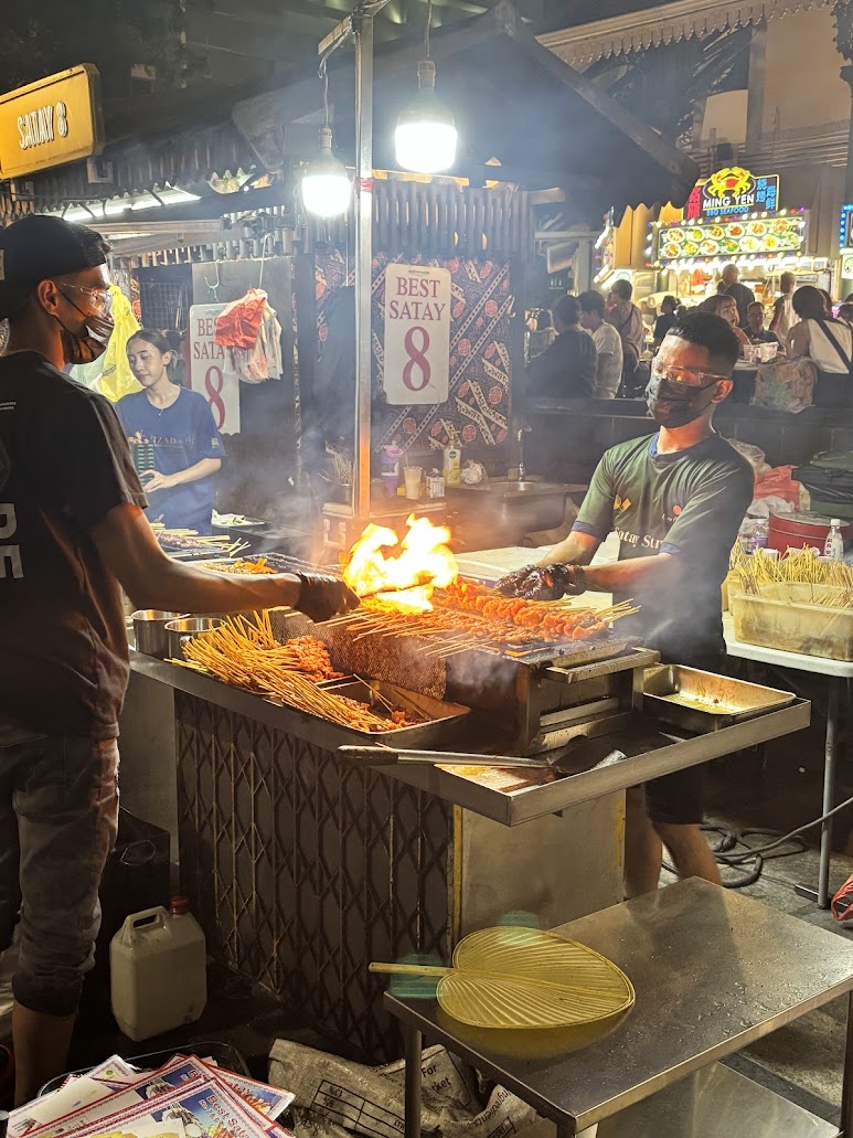 Last night we did a bunch of touristy stuff – really taking a cool boat / bus tour that ended up at the laser + light show on the water in front of the casino/hotel. We then went to one of the various markets for food – most of these are semi-outdoors and you just walk up and order what you want – super cheap too. We were in line for “Satay” – grilled meat – but then the guy says “40 minute wait” and well we changed our mind pretty quick as it was after 9 pm.