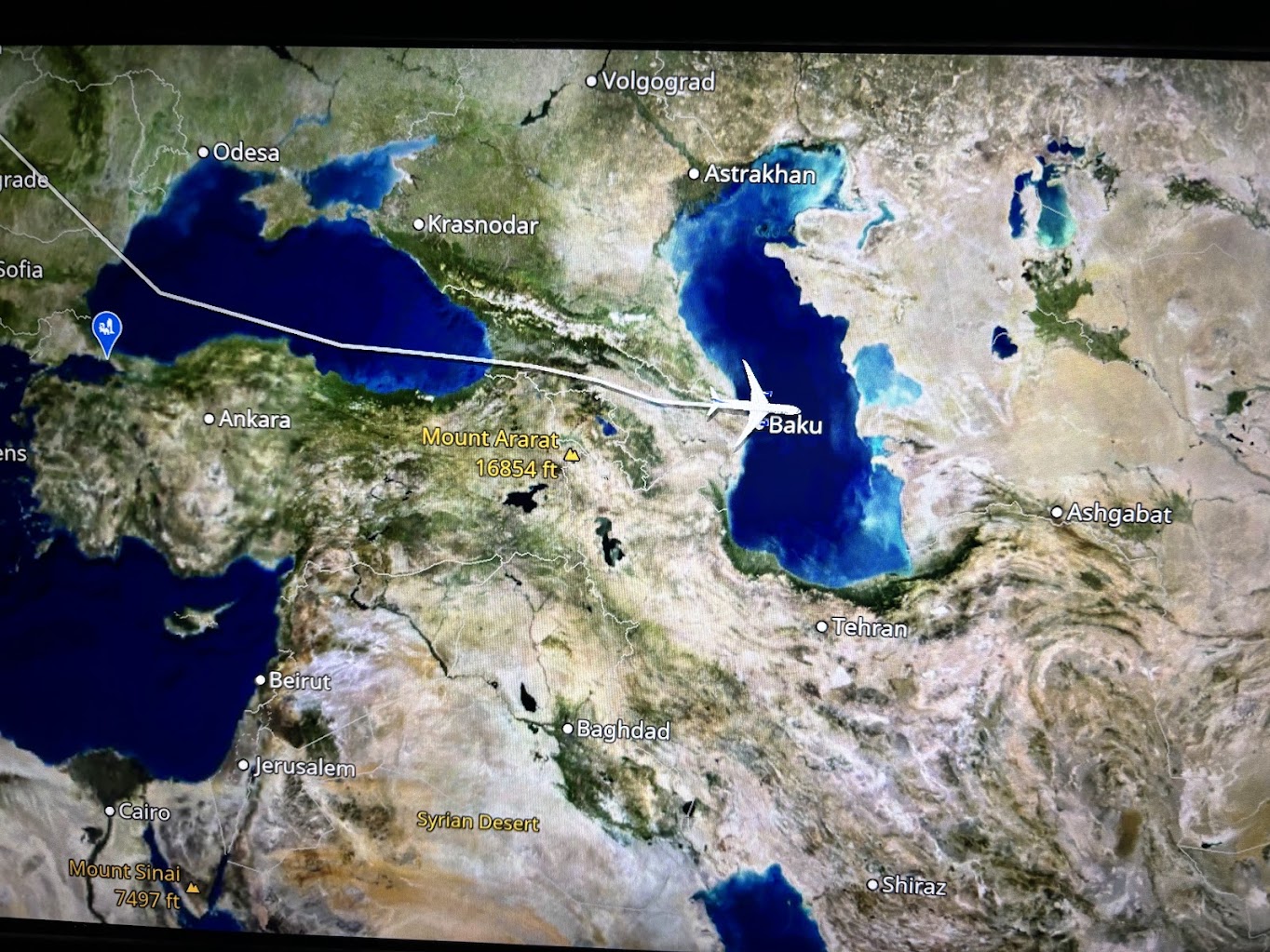 And if you wanted to know the route to get here… Newark to Delhi direct – did it in 13 hours, going back 16… and if you look off the right side of the plane… yikes – it’s a long way away… like an hour+ if the plane turned…