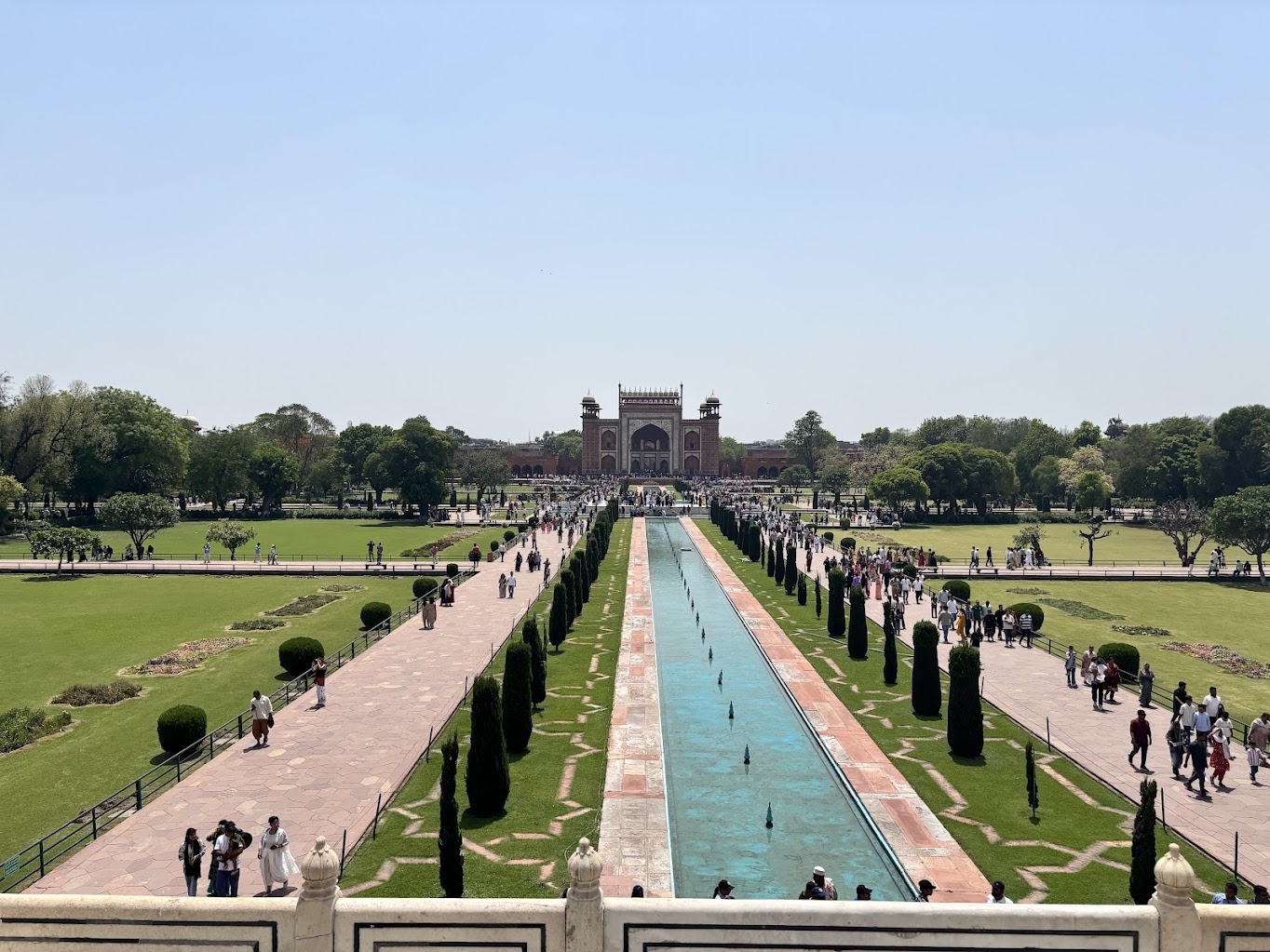 Yesterday we took the 3.5 hour (1 way) drive to see the Taj Mahal. Have never experienced this before, and it is a truly amazing site to visit. The drive isn’t great- not much to see, but when you get there it’s pretty amazing to think that 20,000 people built this tomb for his third wife. Lots and lots of posts about the history and why – but it’s truly amazing – once you see the work up close with all the inlaid stone work, etc. all done by hand as well – then it really is crazy.